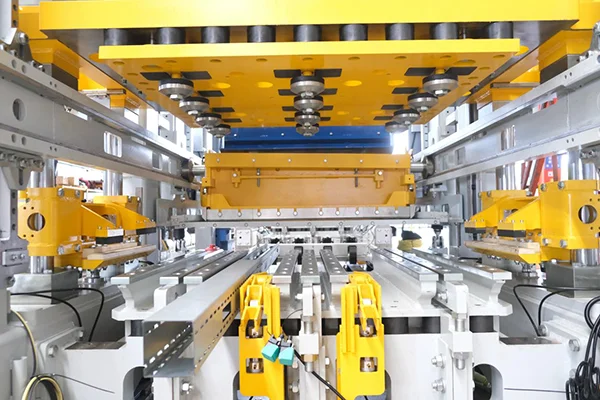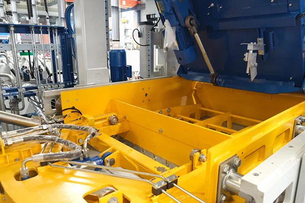 2Sistema automático de cambio rápido de molde El sistema automático de cambio rápido de moldes de Zenith se basa en la operación coordinada de múltiples dispositivos, lo que permite un reemplazo de moldes inteligente, rápido y preciso. Una vez transportado el molde junto a la máquina principal, se coloca sobre la unidad de cambio de molde mediante un sistema de elevación. El sistema completa automáticamente el proceso de cambio de molde sin manipulación, posicionamiento ni bloqueo manuales.